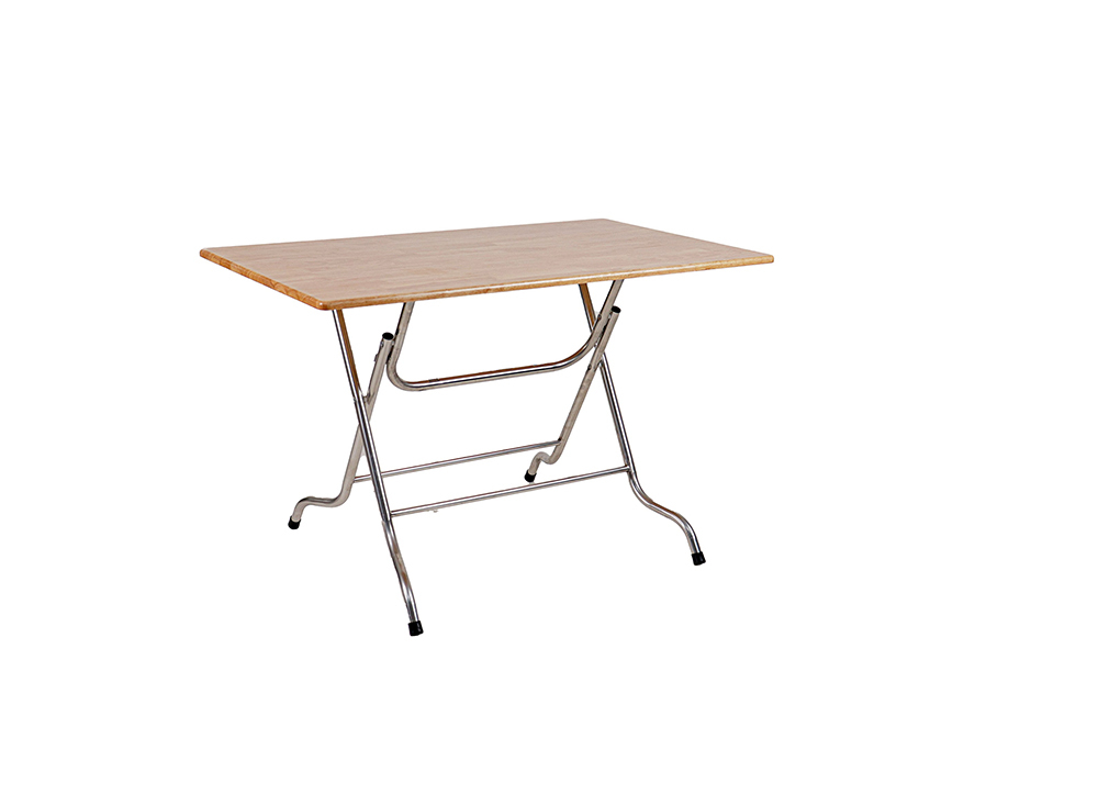 • Bàn gấp khung inox 201 toàn bộ, mặt bàn gỗ cao su thép thanh, các viền cạnh được bo R đảm bảo an toàn cho người sử dụng