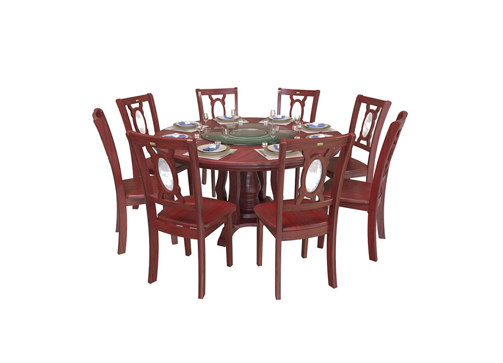 Bộ bàn ghế ăn khung gỗ tự nhiên, mặt bàn tròn được phủ veneer cao cấp.