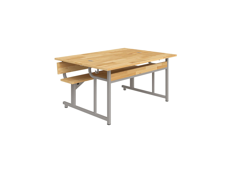 *Bàn dùng cho học sinh lớp 1+2 - Lớp bán trú: Chiều cao tổng thể tính cả phần mặt bàn khi gập lên trong giờ học.tổng thể