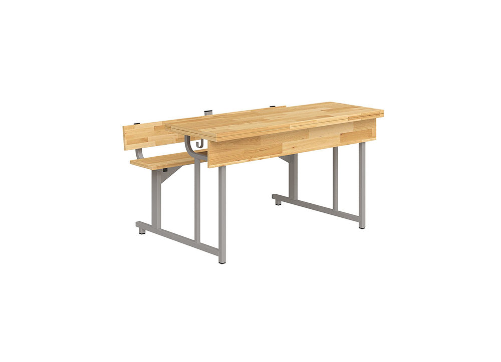 Bộ bàn ghế học sinh bán trú liền ghế, sử dụng khung thép sơn tĩnh điện.