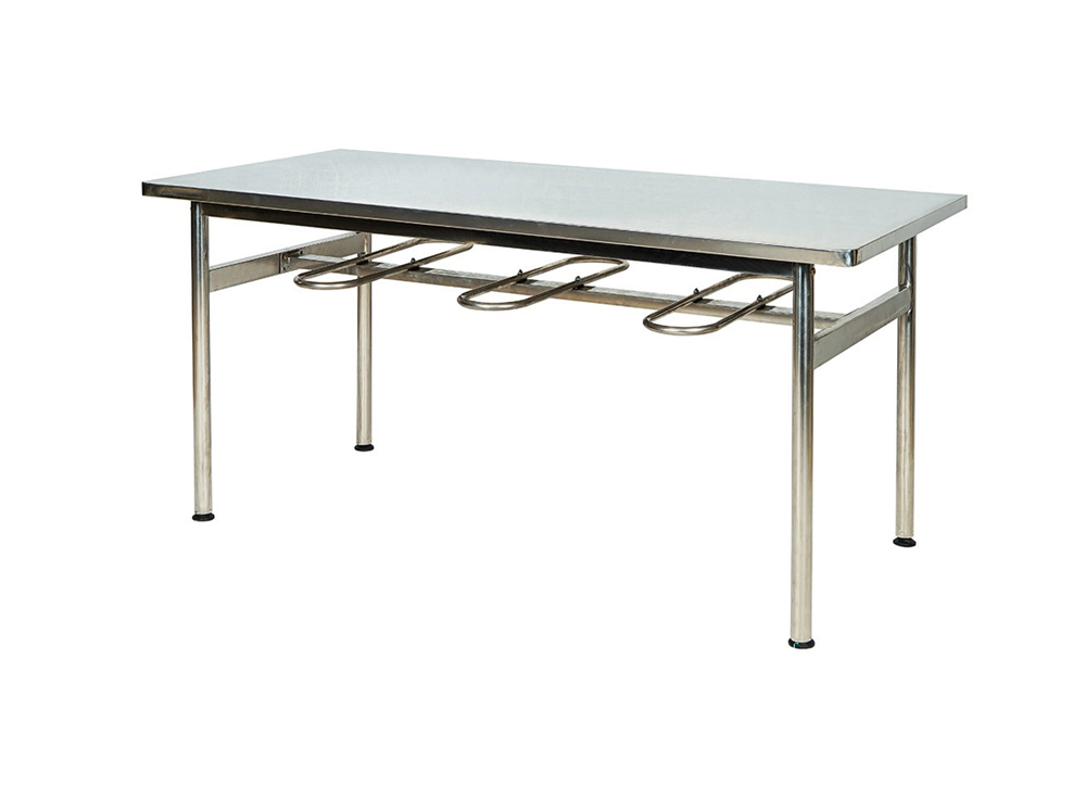 Bàn ăn khu công nghiệp sử dụng chất liệu Inox, chân bàn dùng ống tròn D38.