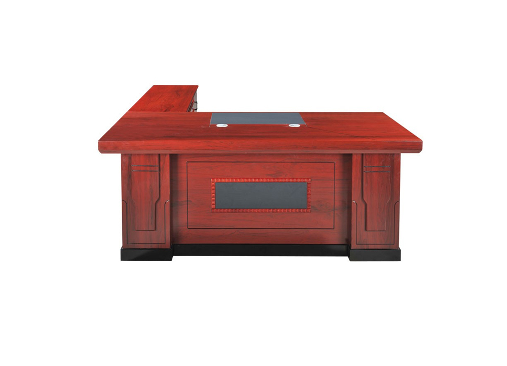 Bàn lãnh đạo sơn PU cao cấp mặt chữ nhật, mặt và yếm bàn có các tấm PVC trang trí.