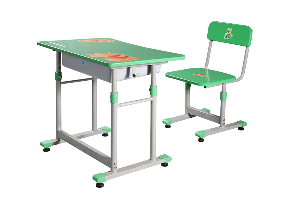 Bộ bàn ghế học sinh khung thép, mặt bàn và đệm tựa ghế gỗ sơn Pu con giống.