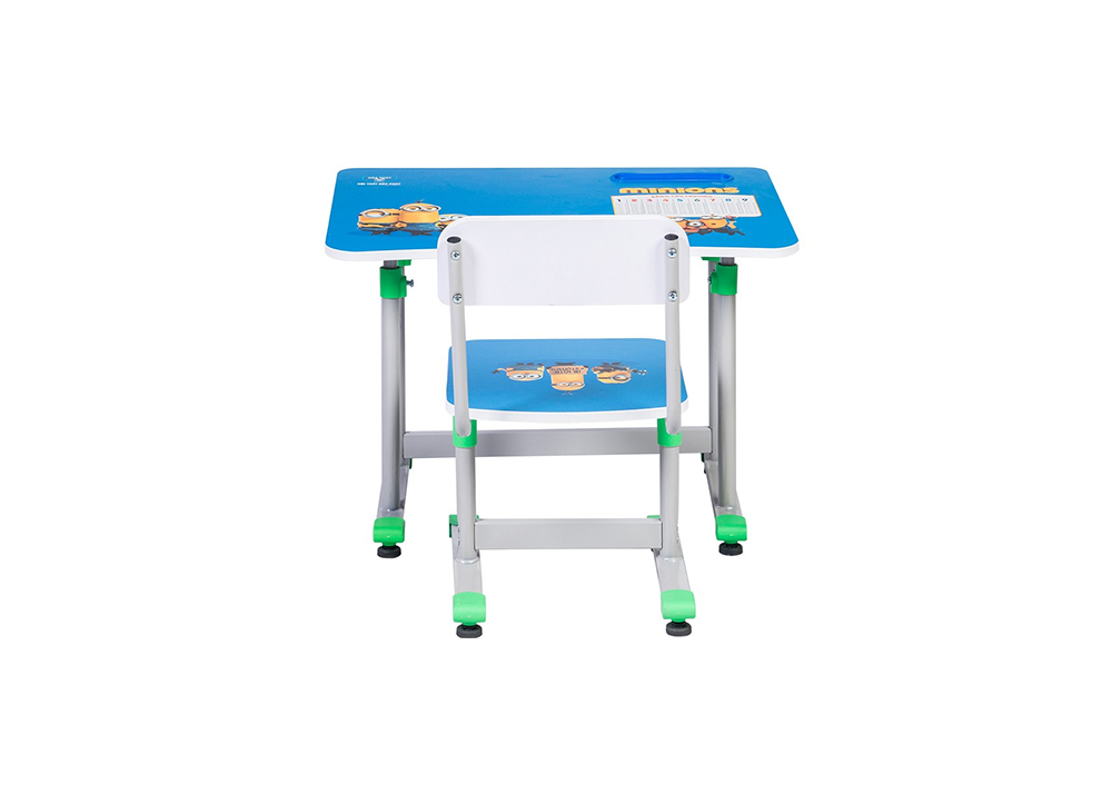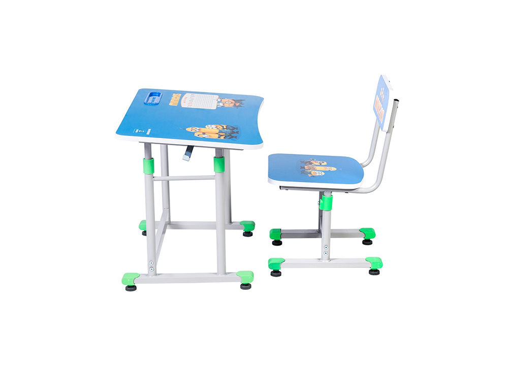 • Bộ bàn ghế học sinh khung thép, mặt bàn và đệm tựa ghế gỗ melamine con giống.