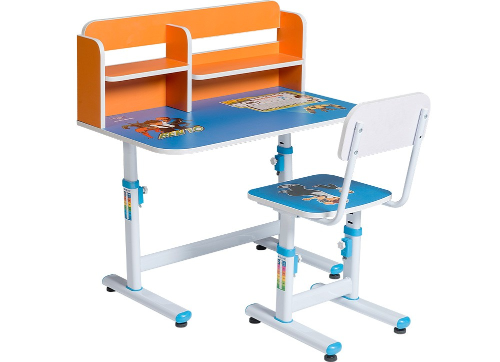Mặt bàn và đệm tựa ghế sử dụng gỗ Melamine in hình con giống.