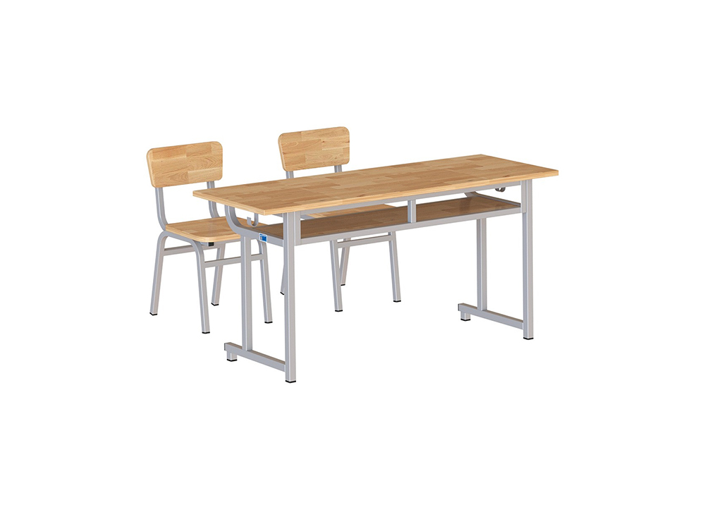 Bàn học sinh đôi rời ghế. Khung thép sơn tĩnh điện, mặt gỗ tự nhiên được phủ một lớp sơn trong suốt để bảo vệ bề mặt và giữ được mầu sắc nguyên bản của gỗ.
