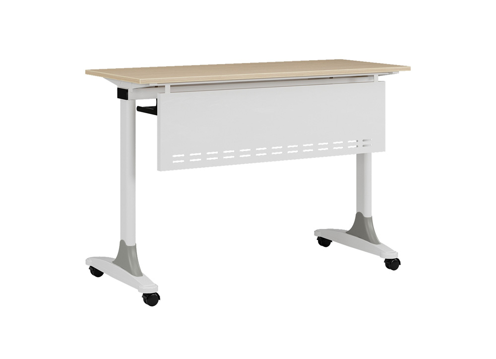 Bàn hội trường gấp mặt, phần gỗ màu M2, khung thép sơn trắng.