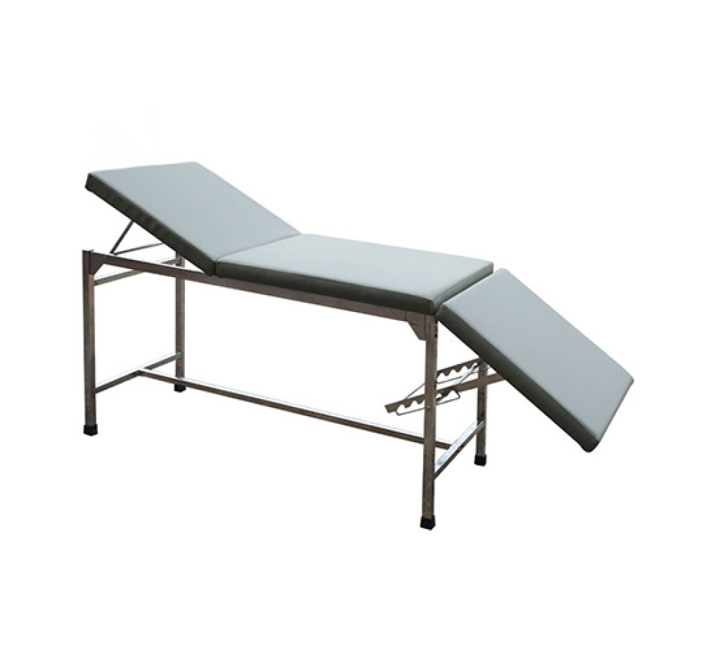 Bàn khám bệnh toàn bộ bằng khung Inox, đệm được chia làm 3 phần gồm: Phần gối đầu, phân thân người nằm và phần để chân.