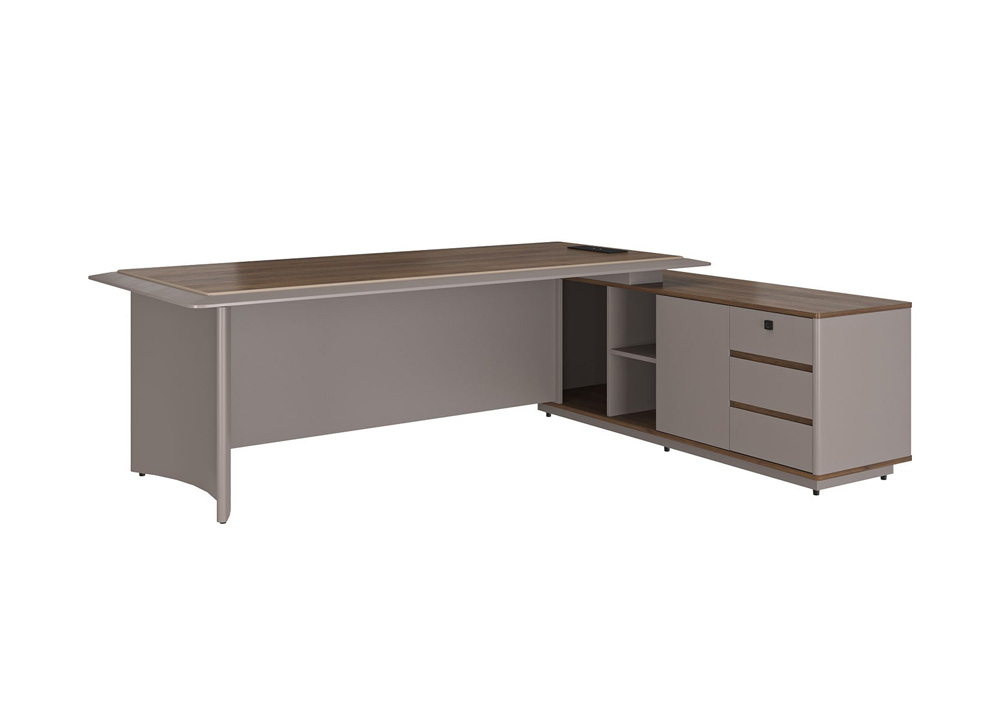 Bàn lãnh đạo LUXURY SUPREME S2 chất liệu gỗ sơn+ melamine Mặt bàn có 01 nắp hộp điện, Kiểu dáng hiện đại, sang trọng, góc cạnh mặt bàn được bo tròn đều. Tủ phụ có kèm khóa cảm ứng vân tay tại ngăn kéo.