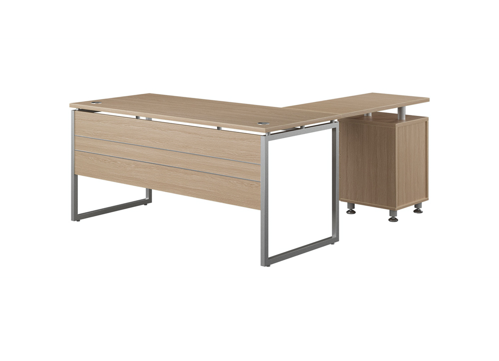 Bàn lãnh đạo khung thép mặt gỗ Melamine. Bàn có hộc đi liền, sử dụng yếm gỗ.
