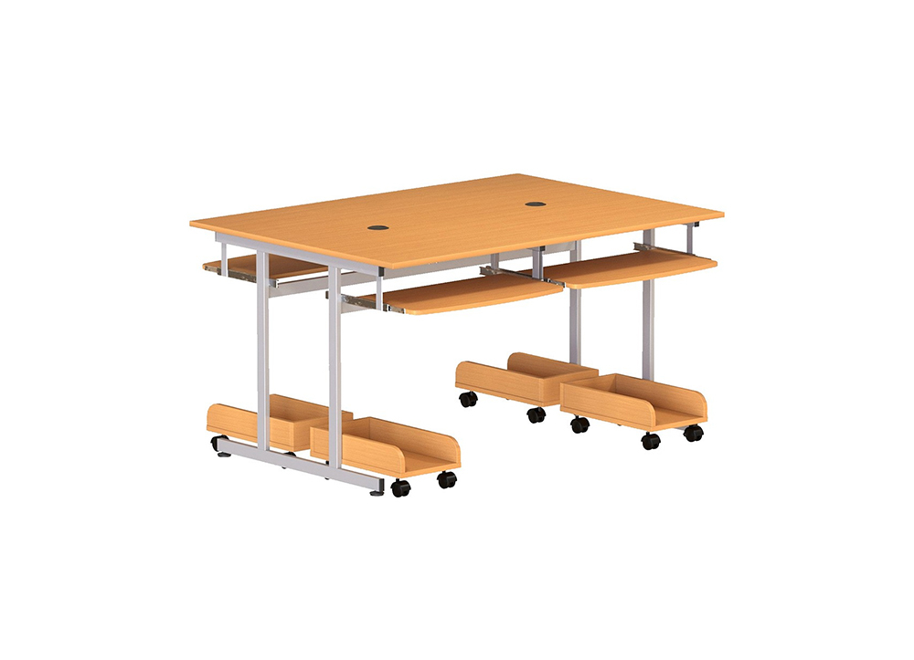 • Bàn máy tính khung thép mặt gỗ Melamine, có 4 chỗ ngồi, (bao gồm 4 kệ CPU di động)