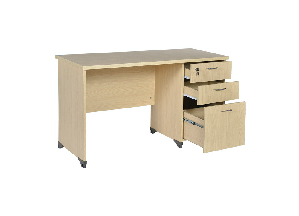 Bàn làm việc nhân viên gỗ công nghiệp Melamine có hộc liền sát đất gồm 3 ngăn kéo.
