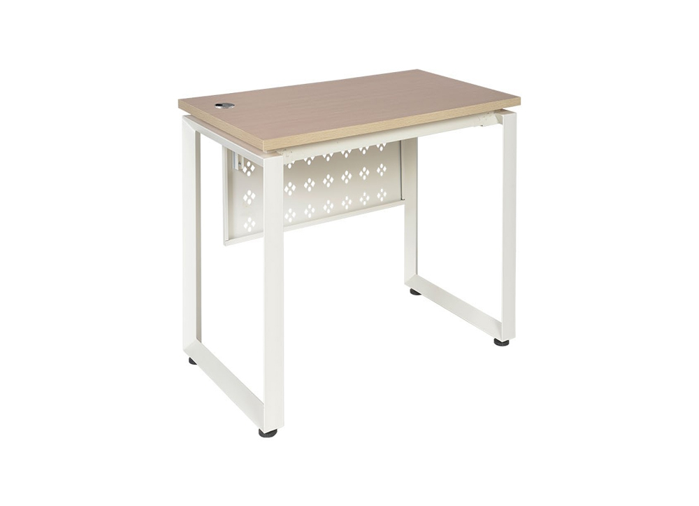 Bàn làm việc khung thép tam giác mặt gỗ Melamine. Có yếm tôn trang trí.