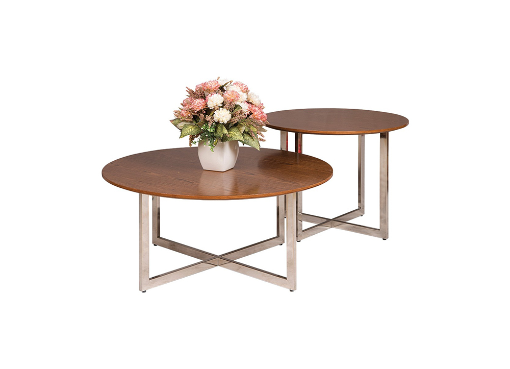 Bộ bàn sofa mặt gỗ Veneer óc chó kết hợp chân bằng ống inox chữ nhật.