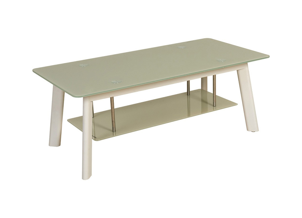 Bàn sofa khung thép sơn tĩnh điện, mặt kính cường lực và có đợt kính treo để đồ phía dưới.