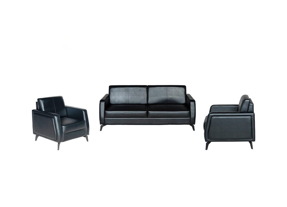 Ghế sofa văn phòng cao cấp bọc PVC hoặc da thật phần tiếp xúc với người sử dụng. Tay ốp gỗ sơn