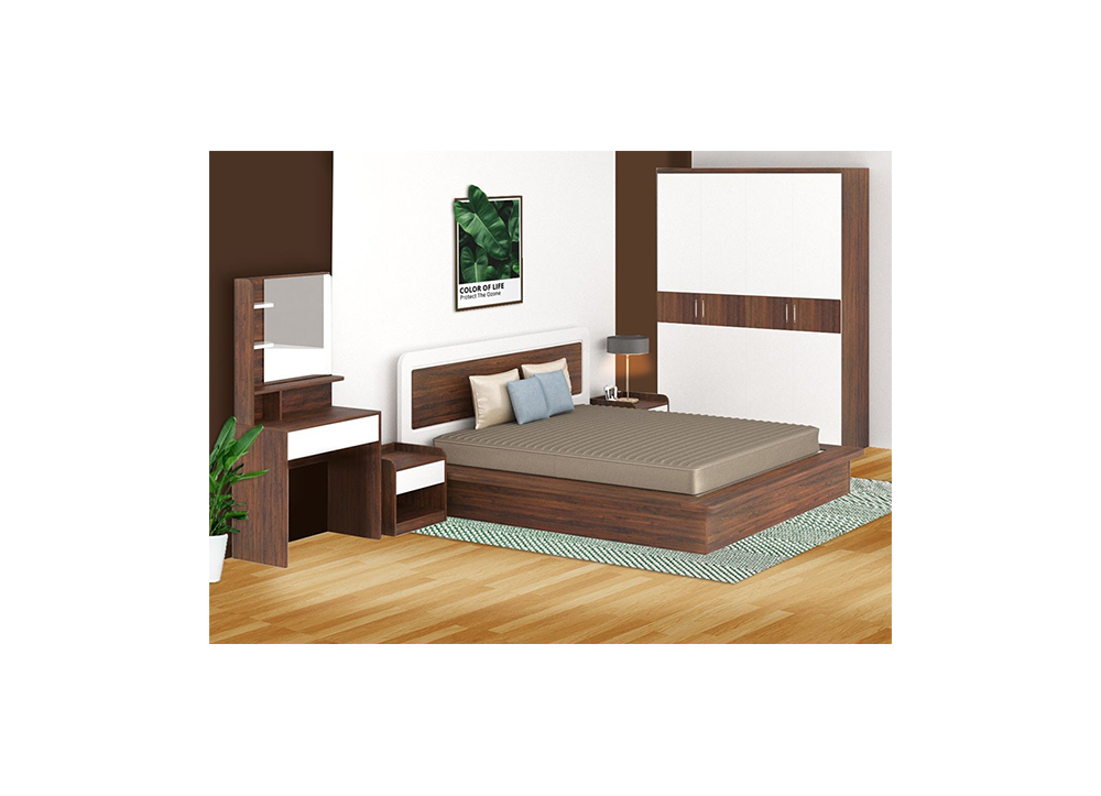 Bộ phòng ngủ 308 cao cấp màu vân gỗ trầm và trắng, kết hợp lamiante.