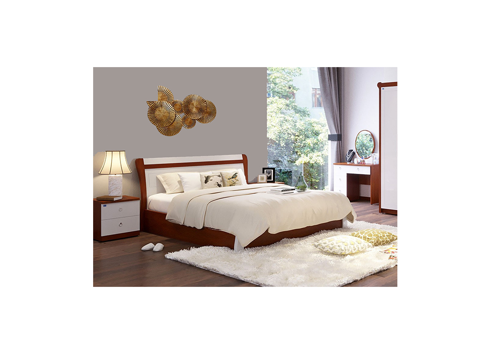 Bộ giường tủ phòng ngủ cao cấp, sử dụng chất liệu gỗ melamine kết hợp veneer, riêng đầu giường được kết hợp giữa gỗ tự nhiên tần bì và gỗ MDF sơn PU cao cấp.