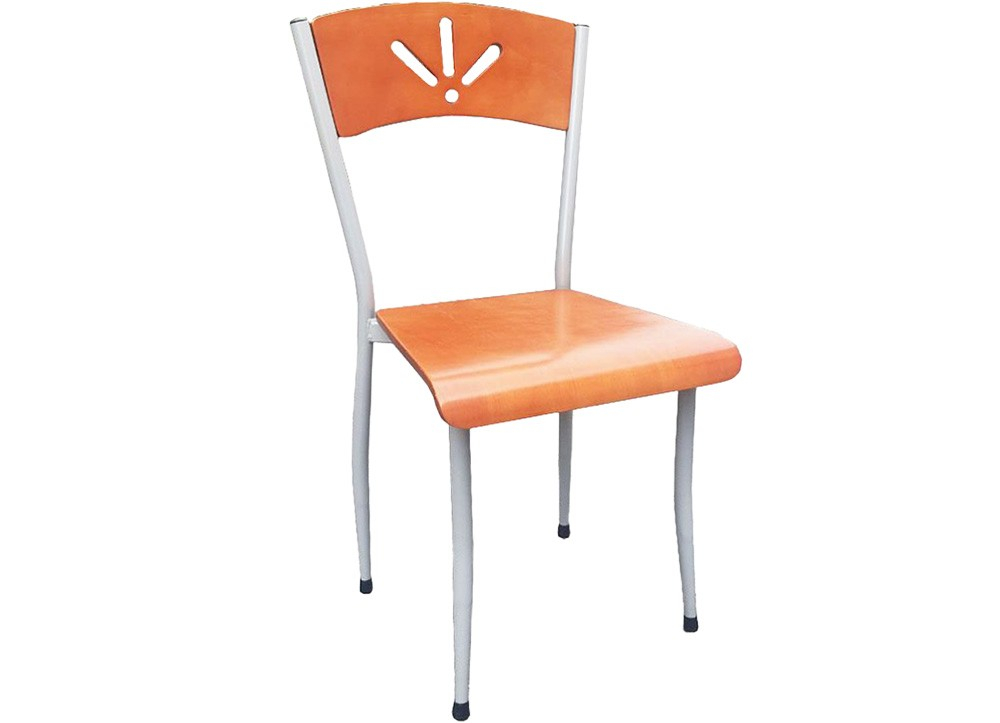 Ghế khung thép chân tĩnh, đệm tựa bằng gỗ.