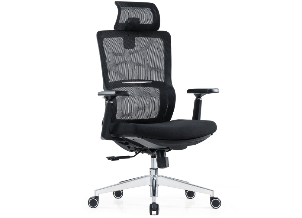 Ghế công thái học hỗ trợ cột sống, đệm mút đúc bọc vải mềm mại, êm ái, khung tựa nhựa bọc vải lưới có thể ngả hãm tại 3 vị trí, tựa đầu có thể điều chỉnh cao - thấp. Tay ghế 3D mặt nhựa PU mềm. Ghế có cơ cấu để chân tiện lợi khi sử dụng. Chân hợp kim.