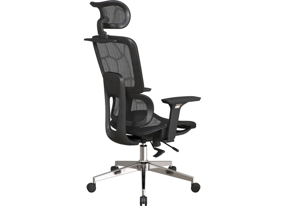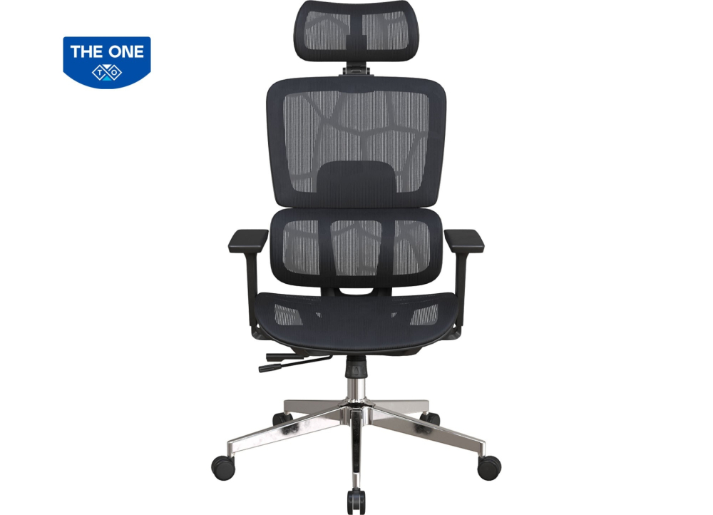 Ghế công thái học, khung đệm tựa bằng nhựa cao cấp bọc vải lưới chịu lực. Ghế có thể ngả hãm tại 3 vị trí, đệm có thể trượt ra trước-sau để điều chỉnh chiều sâu đệm ngồi. Tựa đầu có thể điều chỉnh góc độ và chiều cao. Phía sau ghế có móc treo áo tiện lợi. Tay ghế 3D mặt nhựa PU mềm. Chân thép mạ Cr-Ni.