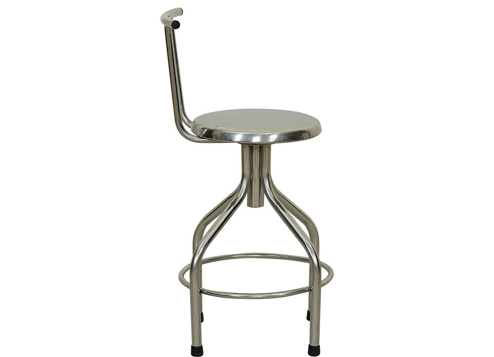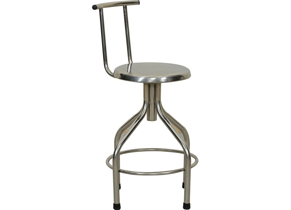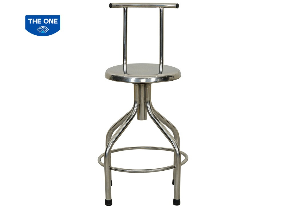 Ghế đẩu quay khung Inox, điều chỉnh được độ cao. Có tựa lưng.