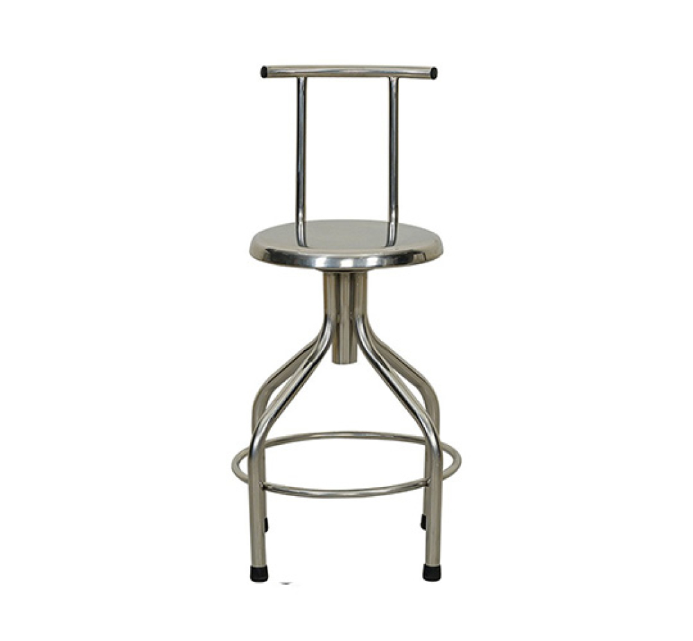Ghế đẩu quay khung Inox, điều chỉnh được độ cao. Có tựa lưng.