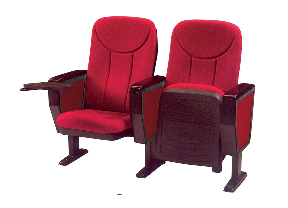 Ghế hội trường cao cấp khung thép, đệm tựa ghế bằng mút đúc bọc vải, sử dụng ốp đệm tựa nhựa.