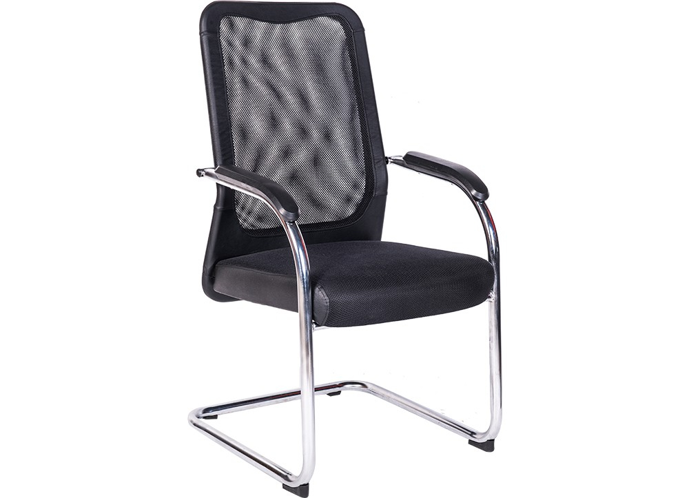 Ghế họp khung thép mạ, tựa bọc vải lưới, đệm mút bọc vải lưới xốp.