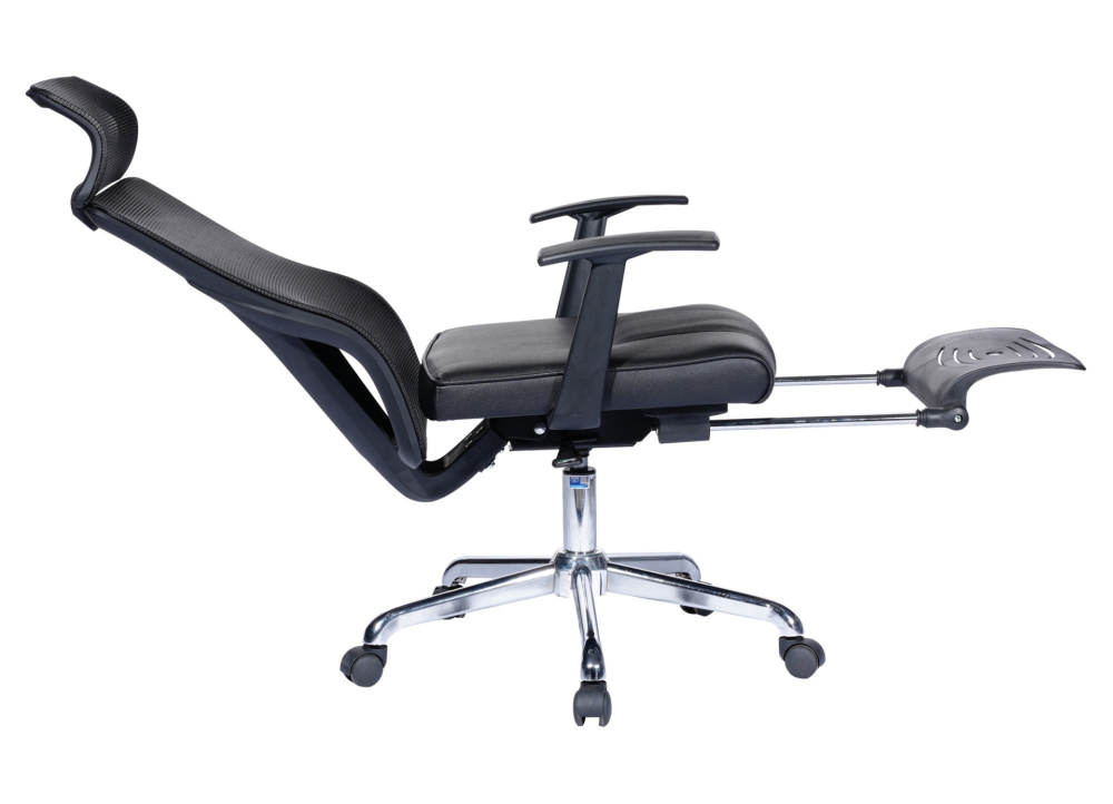 Ghế lưới lãnh đạo lưng cao, đệm bọc PVC, khung tựa bằng nhựa bọc vải lưới. Tay ghế nhựa và dung chân thép mạ. Ghế có thể ngả hãm nhiều góc độ, có cơ cấu để chân bằng nhựa sử dụng thuận tiện khi ngả ra nằm.