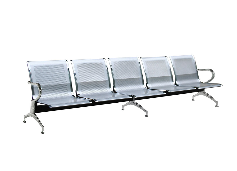 Ghế phòng chờ khung thép sơn tĩnh điện kết hợp mạ Ni-Cr, đệm tựa ghế có đột lỗ.