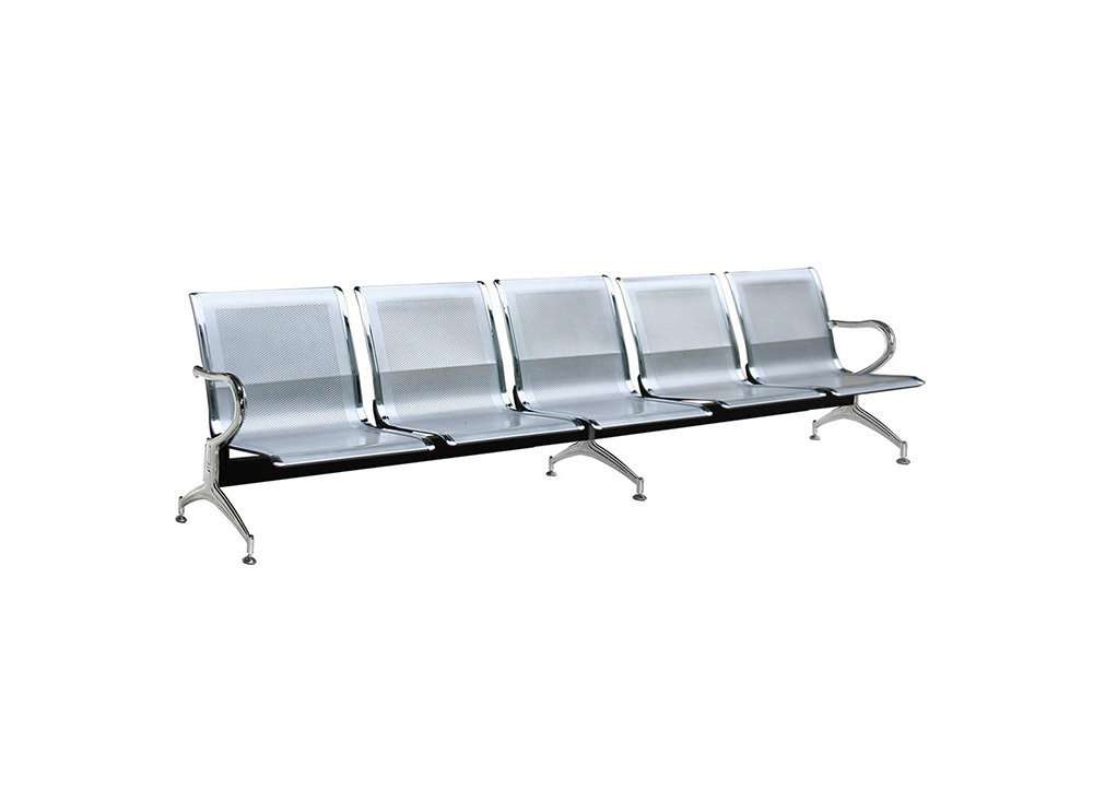 Ghế phòng chờ khung thép sơn tĩnh điện kết hợp mạ Ni-Cr, đệm tựa có đột lỗ và gồm 5 chỗ ngồi.