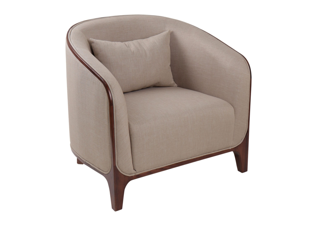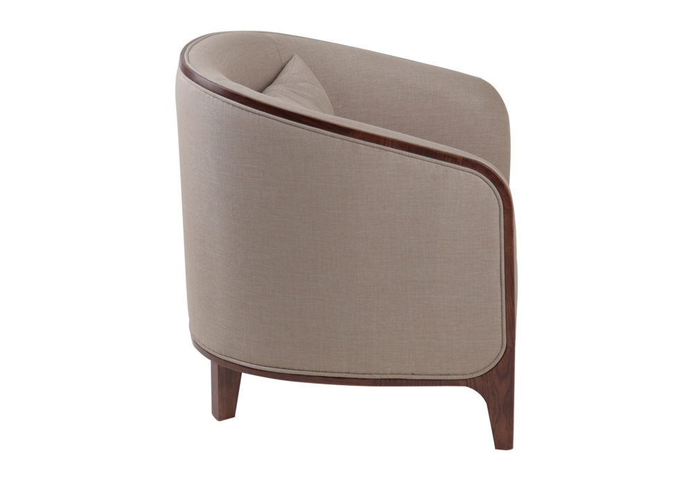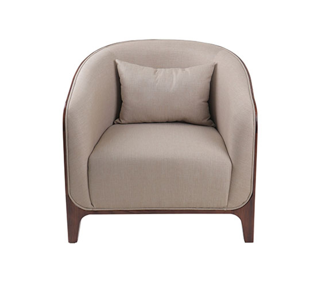 Ghế nghỉ sảnh, ghế thư giãn sử dụng khung gỗ tần bì sơn óc chó chạy viền xung quanh tựa ghế. Đệm tựa mút êm ái, bên ngoài bọc vải kiểu dáng hiện đại