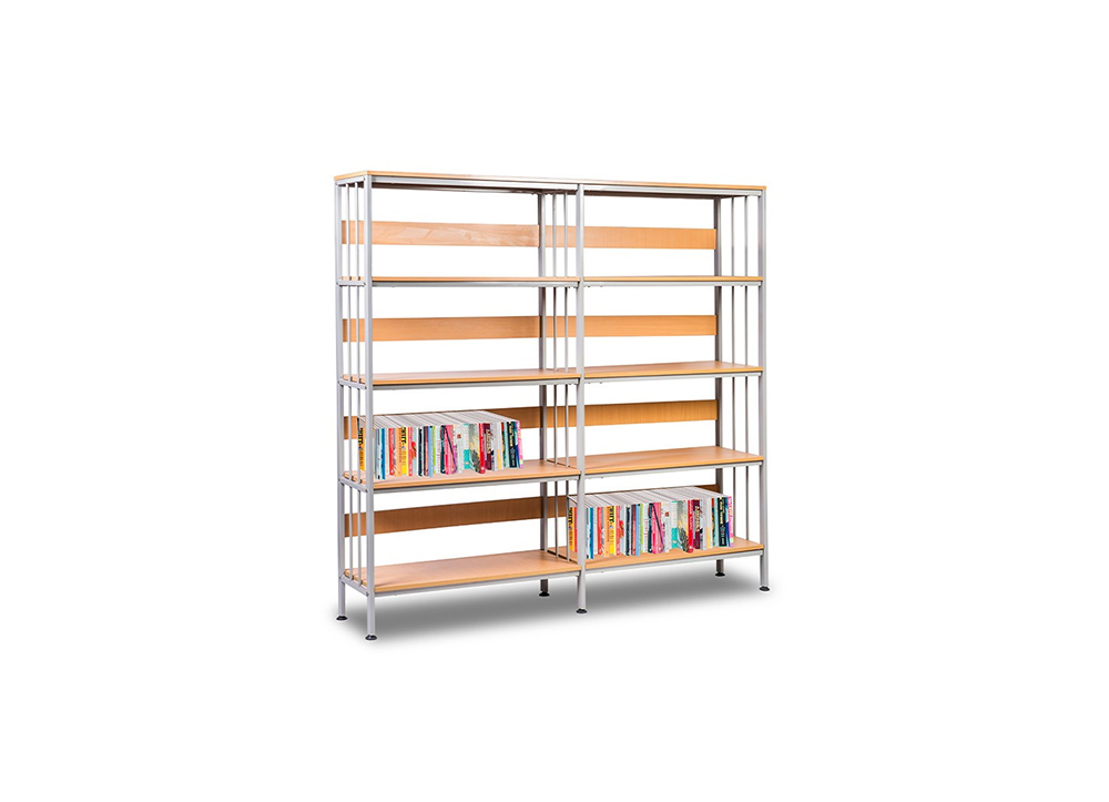 Giá sách khung thép đợt gỗ Melamine có 2 khoang 4 ngăn.