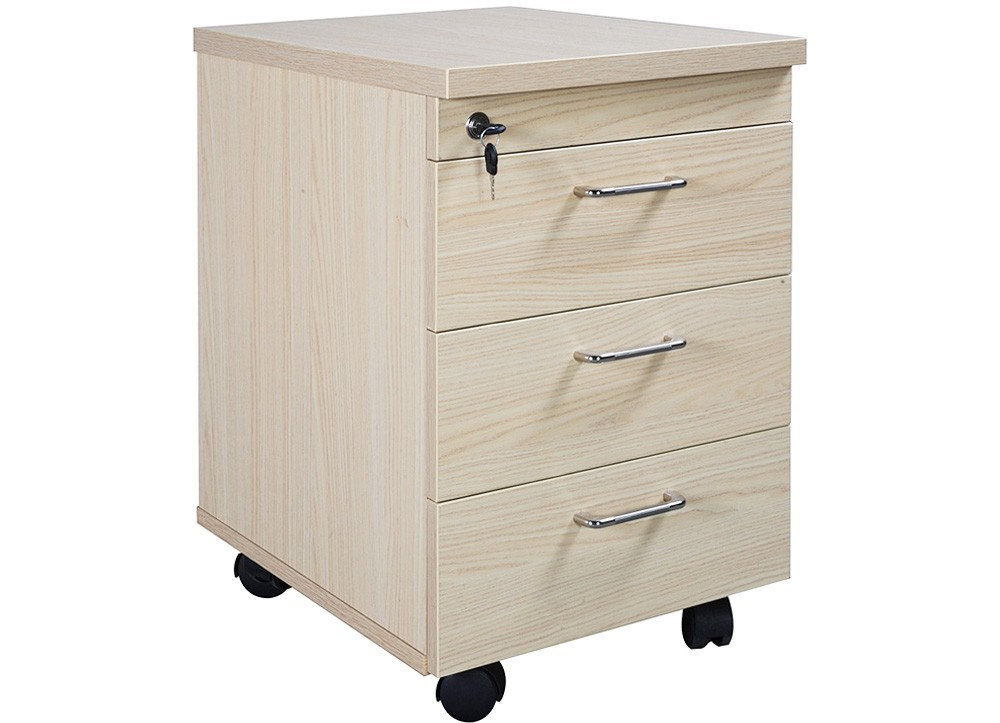Hộc di động gỗ công nghiệp 3 ngăn kéo, sử dụng khóa dàn và tay nắm cong.