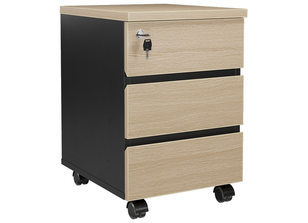 Hộc di dộng 3 ngăn kéo, khóa dàn, tay nắm phay vát cạnh.