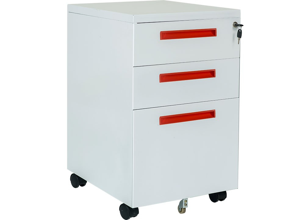 Hộc sắt di động 3 ngăn kéo sử dụng thép sơn tĩnh điện màu trắng sáng.