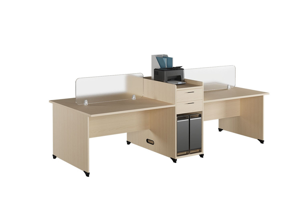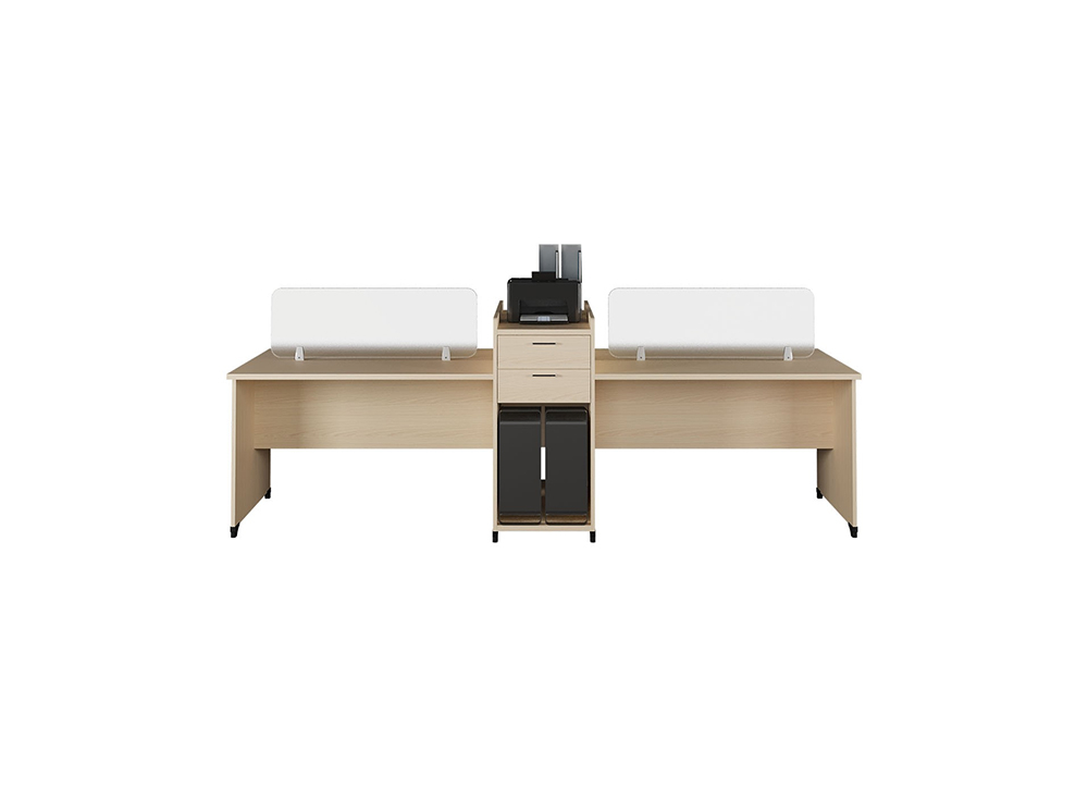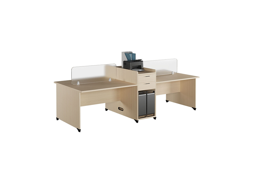 Modul Bàn làm việc 4 chỗ có tủ phụ và vách kính