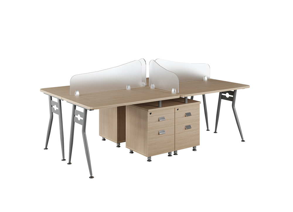 Module làm việc 4 chỗ, dụng chân sắt và có vách ngăn kính.