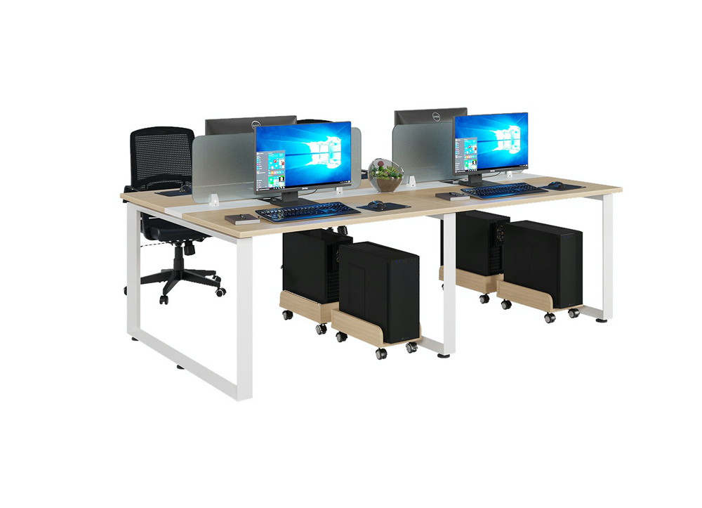 Modul làm việc 4 chỗ khung thép tam giác, mặt gỗ Melamine và có vách ngăn kính