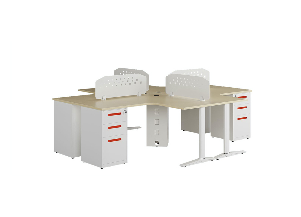 Module làm việc chữ nhật 4 người, mặt bàn bằng gỗ melamine và tay nắm âm màu cam