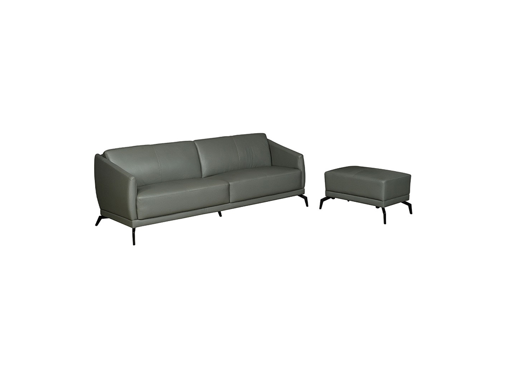 Bộ ghế sofa 1-2-3 hoặc kết hợp ghế đôn với kiểu dáng hiện đại, đệm tựa mút xốp bọc da hoặc PVC. Chân thép sơn đen