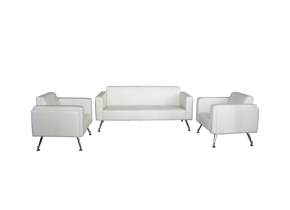 Bộ ghế sofa phong cách hiện đại, chân thép mạ. Bộ ghế sử dụng chất liệu PVC gồm: 01 ghế băng, 02 ghế đơn.