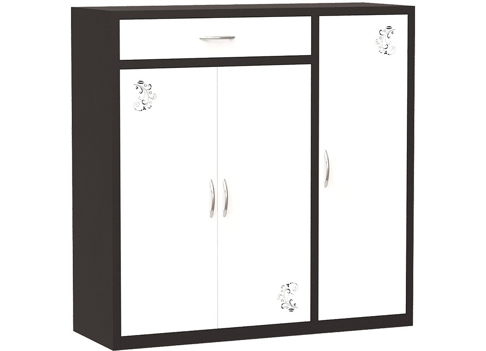 Tủ để giày sơn tĩnh điện gồm 2 khoang cánh mở và 1 ngăn kéo. Khoang lớn bên trái gồm 3 đợt di động chia 4 tầng để giày. Khoang bên phải gồm 1 suốt treo ô và 1 đợt để giày