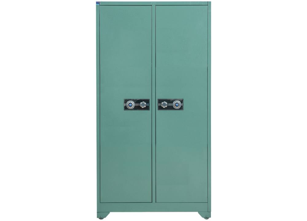 Tủ sắt thép dày gồm 2 khoang, mỗi khoang có 3 đợt di động.