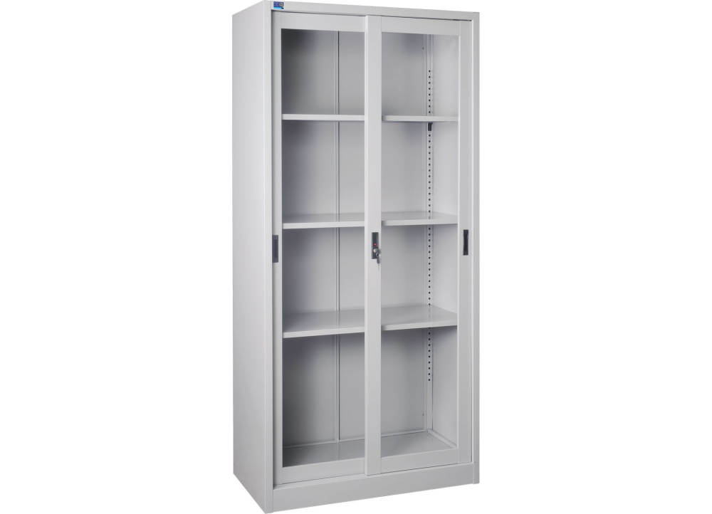 Tủ sắt sơn tĩnh điện 1 khoang, sử dụng cánh kính lùa khung thép và có 3 đợt di động.