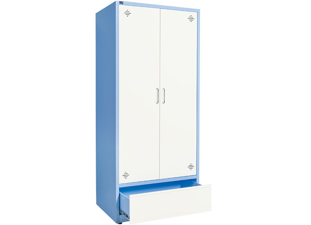 Bên trên gồm 1 đợt cố định và 1 suốt treo quần áo, bên dưới là 1 ngăn kéo sử dụng ray bi.