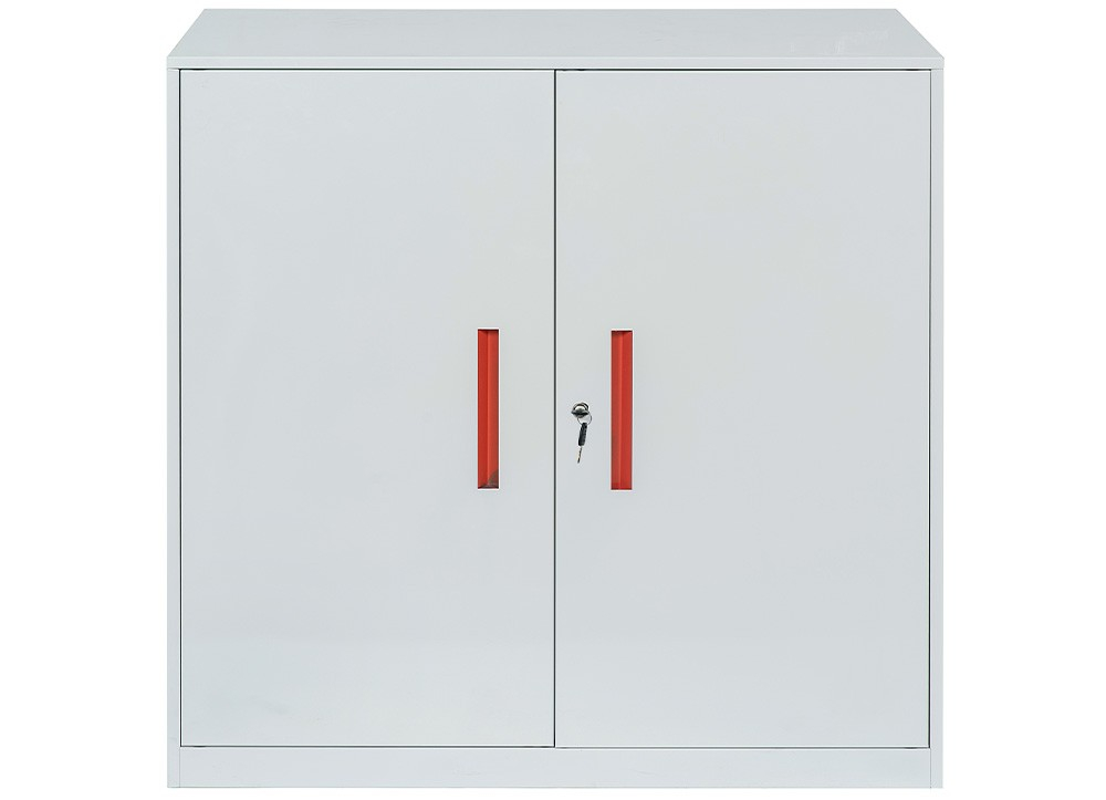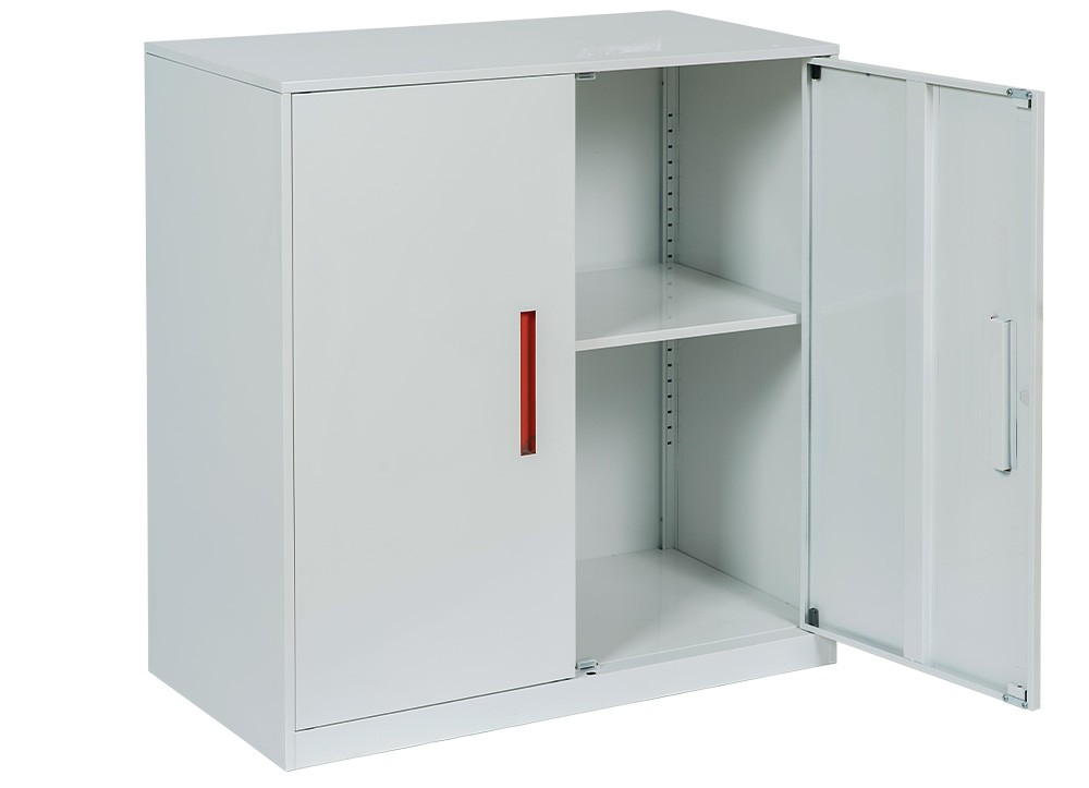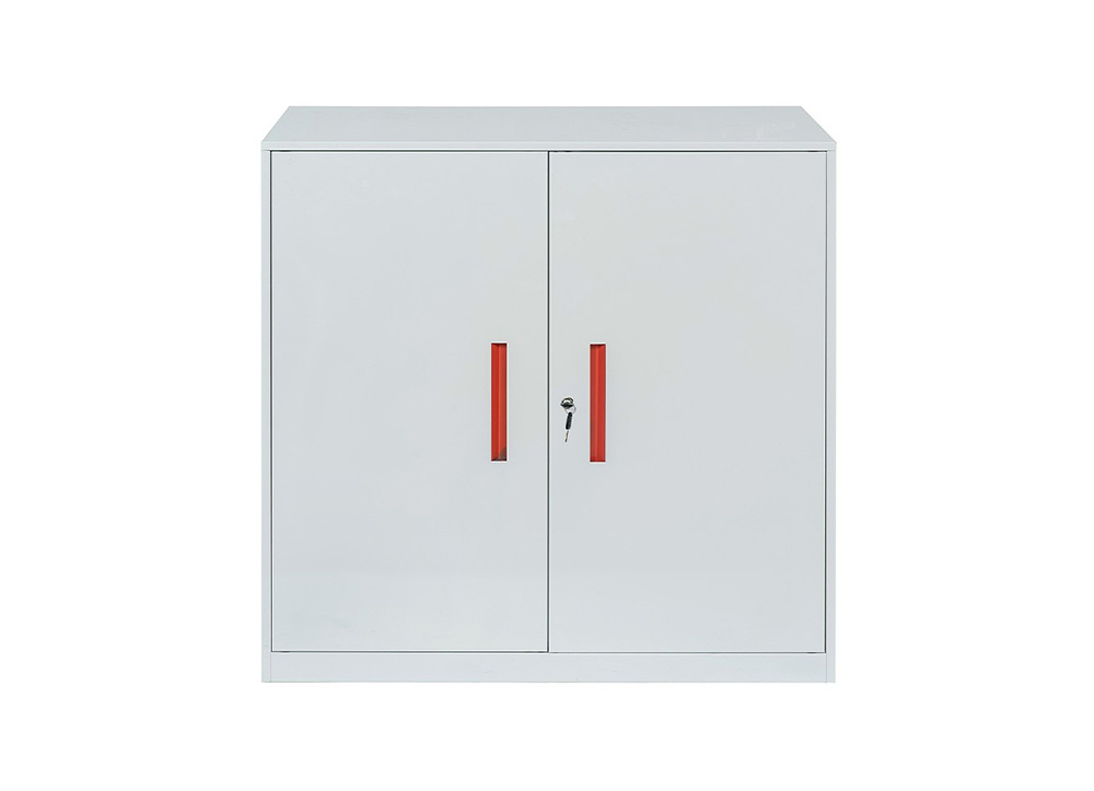 Tủ hồ sơ thấp cánh mở sử dụng chất liệu thép sơn tĩnh điện màu trắng sáng, phù hợp với không gian văn phòng hiện đại.