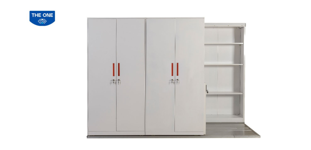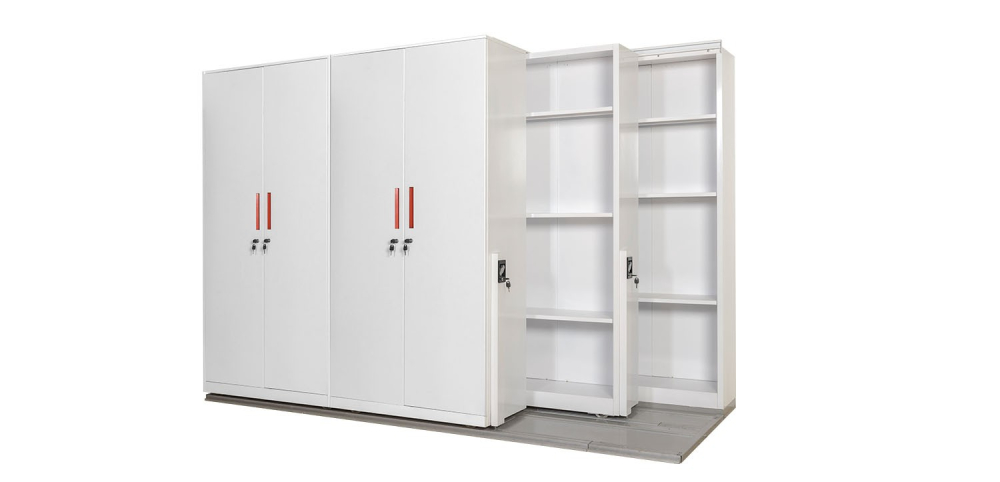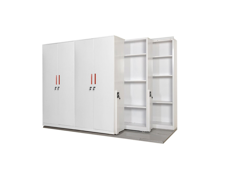 Giá để tài liệu di động sử dụng hệ thống ray trượt nhằm tiết kiệm không gian. Giá gồm 3 lớp: